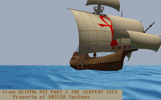 A screen shot of the Avatar's ship. This is a scene from the begining of Ultima VII Part II: The Serpent Isle. 320x200x256 Compuserve .gif format.